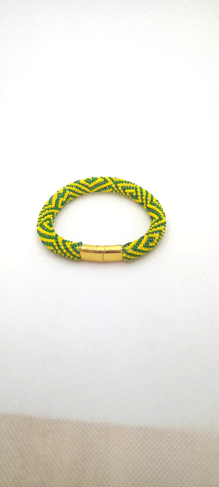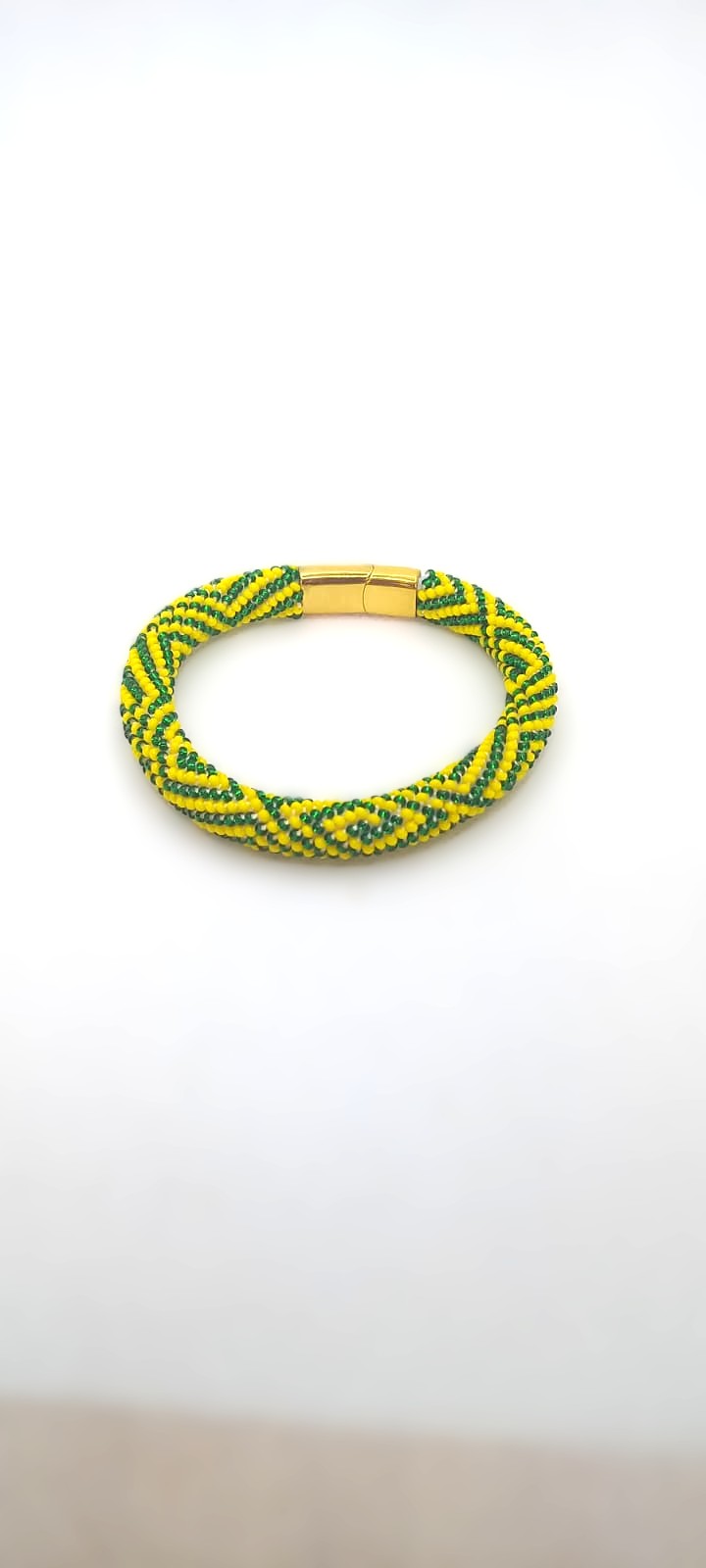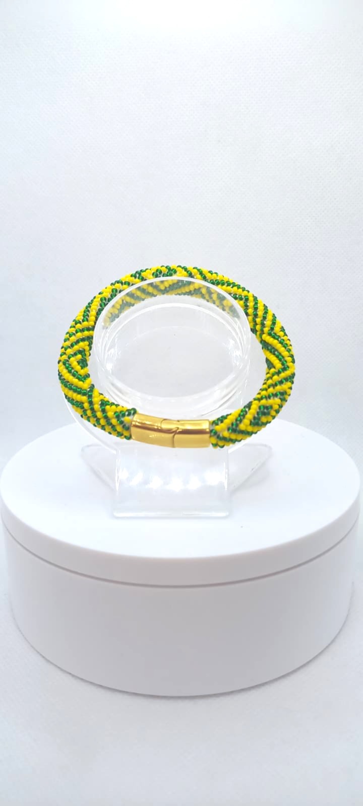Ilde confeccionado con cuentas de cristal checo y la técnica del crochet con cuentas, en hilo 100% poliéster de 8 cabos. su cierre es magnético de acero inoxidable.
