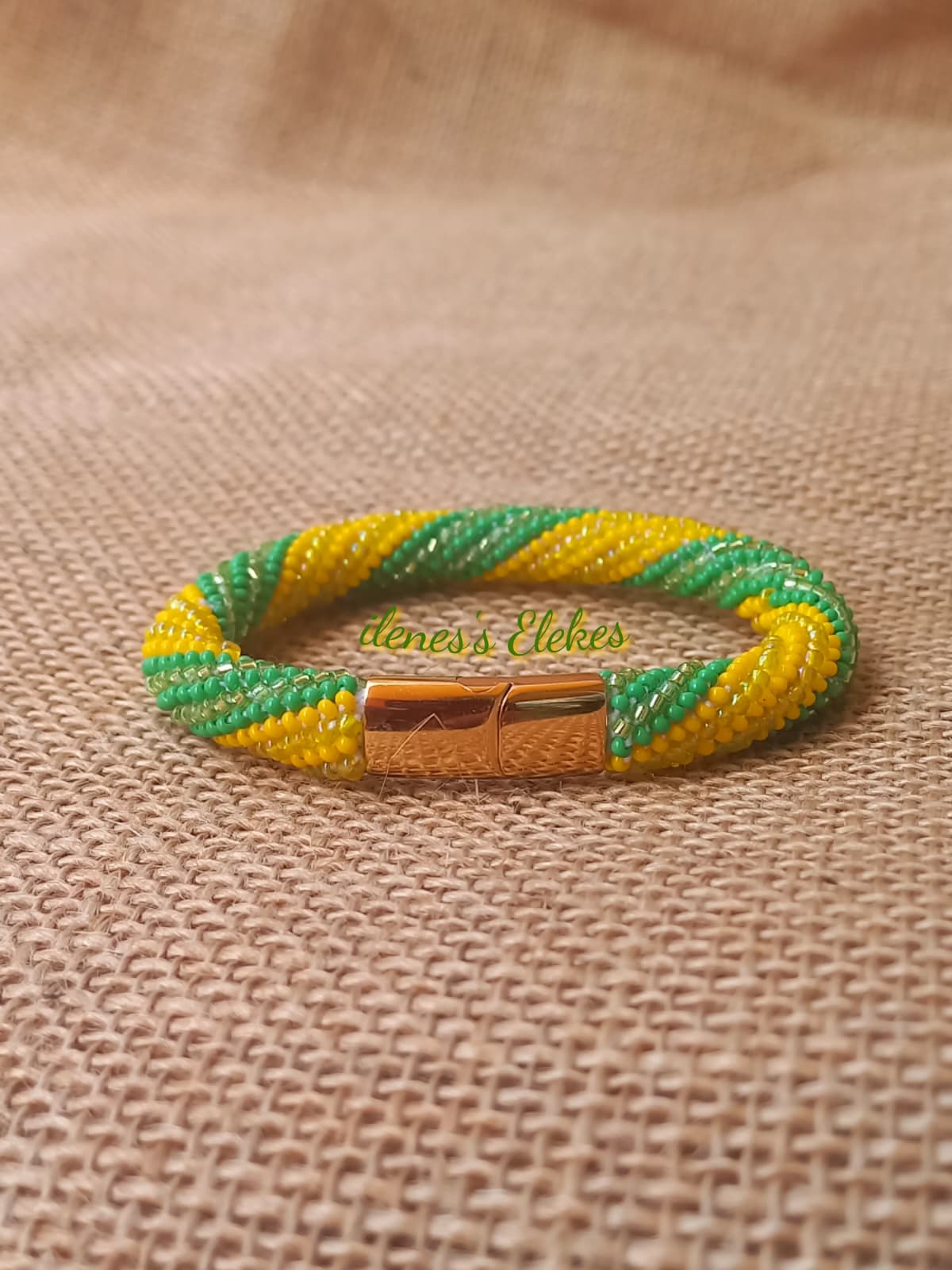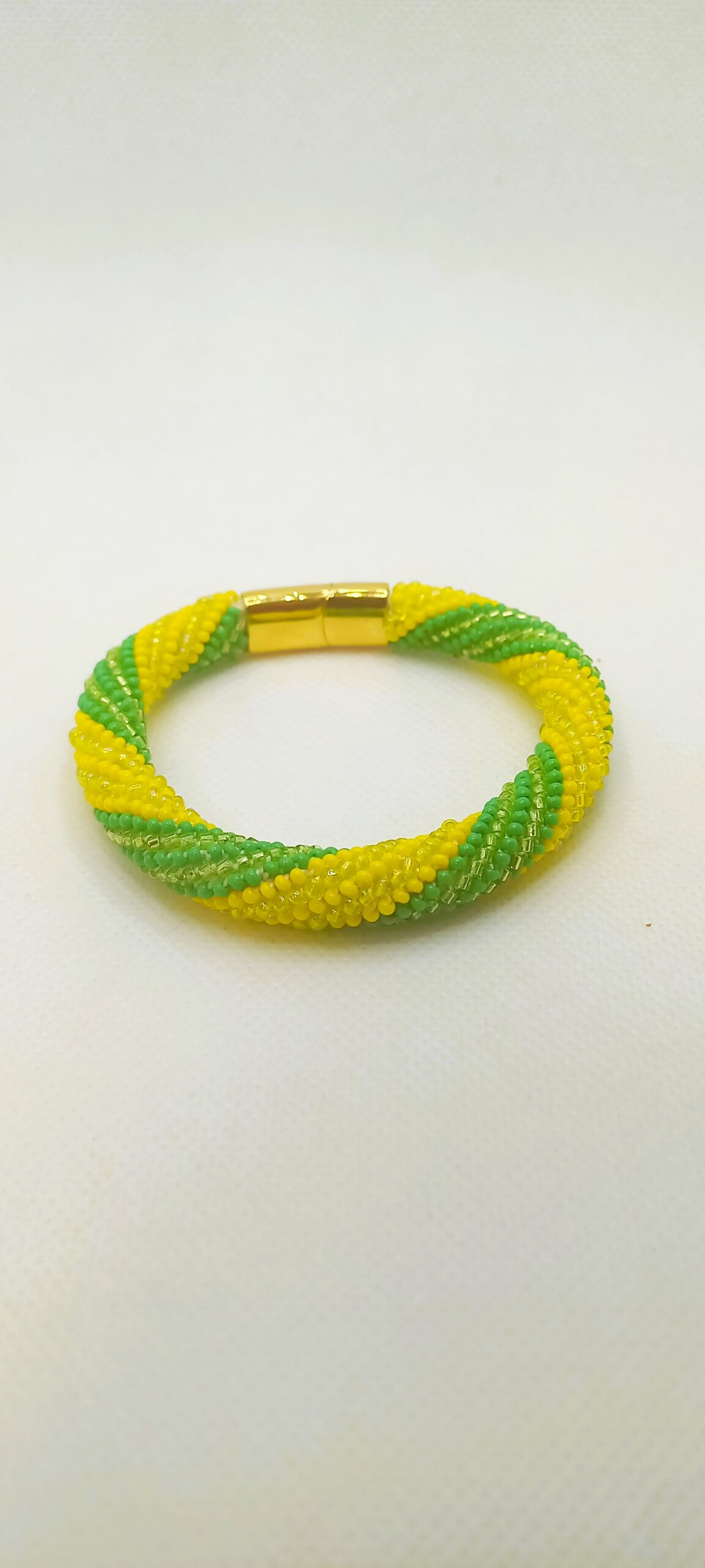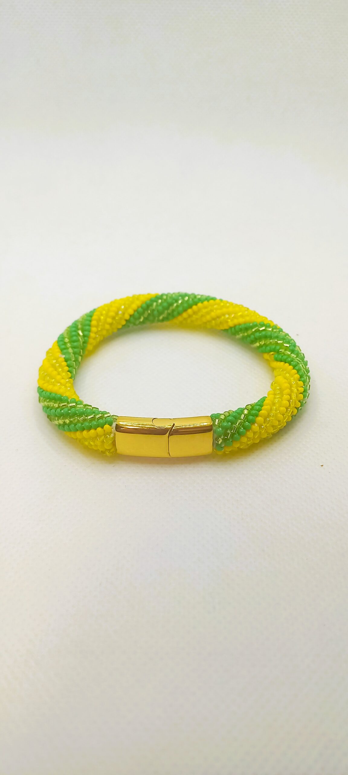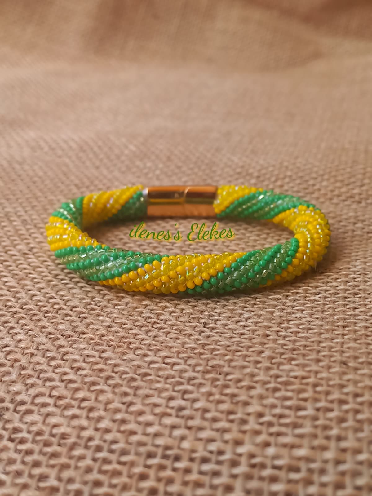 Ilde confeccionado con cuentas de cristal checo y la técnica del crochet con cuentas, en hilo 100% poliéster de 8 cabos. su cierre es magnético de acero inoxidable.