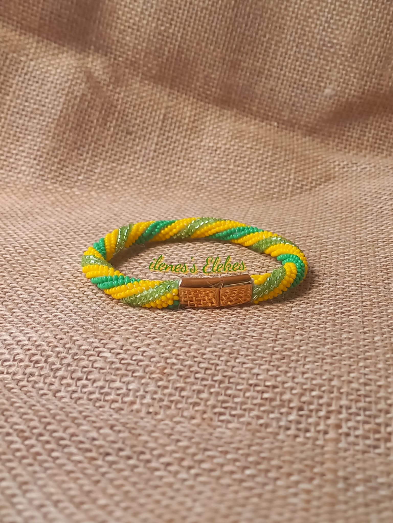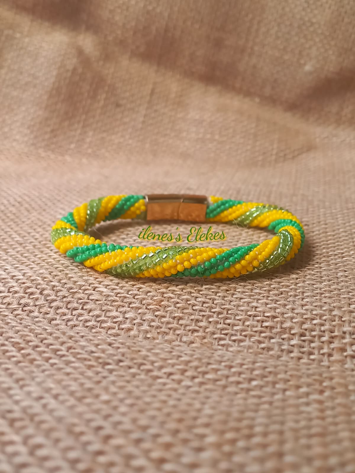 Ilde confeccionado con cuentas de cristal checo y la técnica del crochet con cuentas, en hilo 100% poliéster de 8 cabos. su cierre es magnético de acero inoxidable.